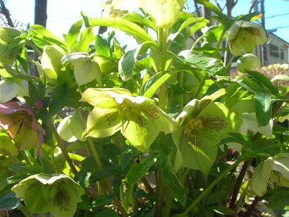 玄関のベルを鳴らすとすぐに奥さんが出てきてくださった。電話の声と同じ気取らない感じの小柄な普通のご家庭の奥さんだ。早速庭中のクリスマスローズの花の説明をしてくださった。もともと花は好きっだたという。35年前に一株買って育て始めたクリスマスローズも、今では約30種類ほどが咲いているという。白い花、ピンクの花、グリーンの花、紫の花、黒い花など、よく見ると、一株一株、花の色が微妙に違っている。