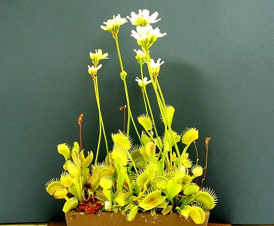 | 山野草に魅せられた男女26名(男性17名、女性9名)のグループ。 創設は、浜松市フラワーパーク開園(昭和45年9月)の前年、昭和44年4月と言うから、既に36年の歴史がある。毎年春と秋の年2回、フラワーパークで展示会を開催し、即売も行っており、毎月第3土曜日の午後に、西部公民館で例会を開催している。 2005年6月24日〜26日、クリエート浜松にて、恒例の展示会「納涼山草展」が開催され、取材に訪問させていただいた。(右端が会長の伊藤戈一さん) ★浜松山草会では野山に咲く花を育てる仲間を募集しています。ぜひあなたも展示会、定例会を訪問してみてはいかがでしょうか。 |