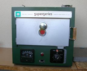 素材を見せていただいたが、いろいろな型をした銅板ベースが数百円程度で入手できるそうで、比較的手軽に楽しめるそうだ。これに一般的にはいろいろな色のガラス素材の釉薬を塗って絵柄を描き、摂氏800度の電気炉で約2分前後焼くと釉薬が溶けて出来上がる。もっとも電気炉が少々高価で個人では買いづらく、温まるのに2時間ほど掛かるのが大変なようです。朝10時に来ても電気炉が使えるようになるのが12時頃になるので、みんなお弁当持参で4時頃まで頑張るそうです。